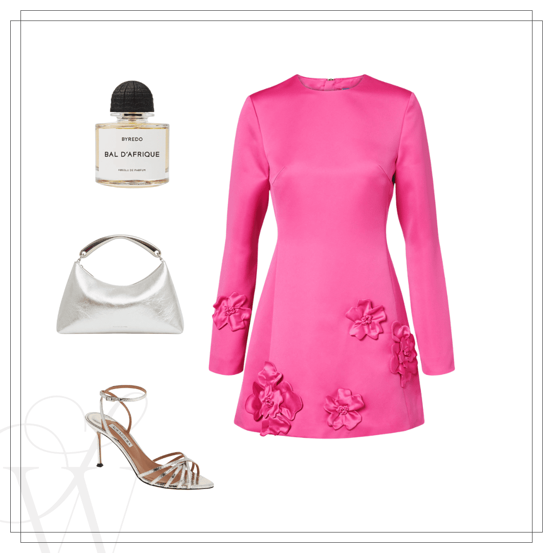 Left: Lio Lim dress | Silver sandal | Silver clutch | Perfume | Right: White dress | Sandals | Valentino bag