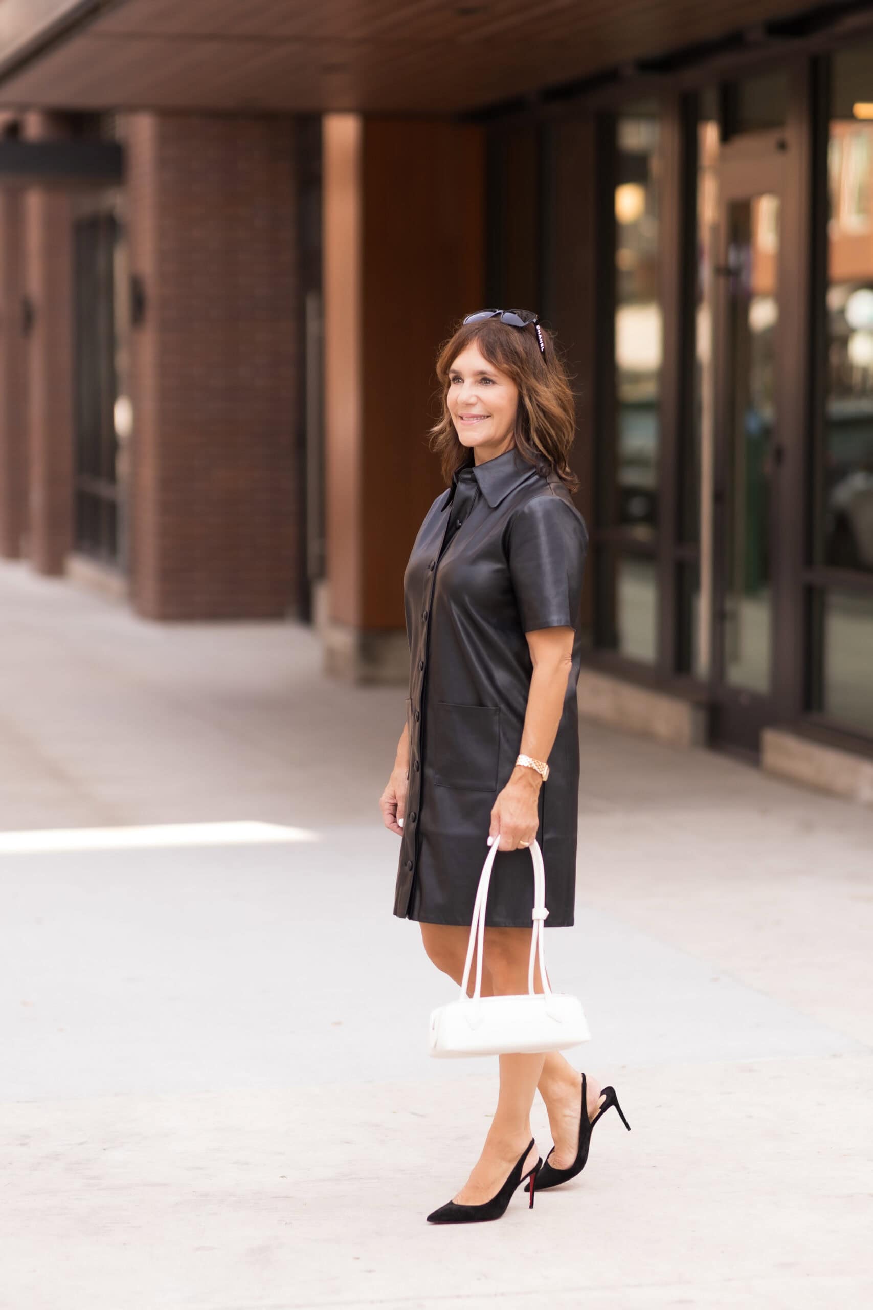 Faux leather is perfect for this time of year, and it looks way more expensive than it actually is. The dress I’m wearing above also comes in a gorgeous burgundy color. For other good options, look at this dress, this skirt and this cool jacket (this one is real leather).