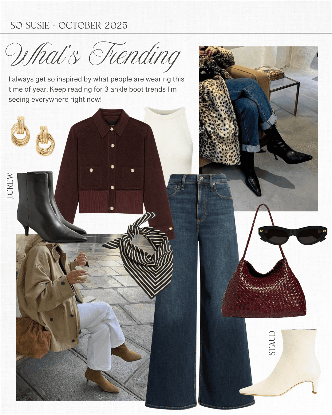 This week, it’s all about ankle boots: the versatile, go-with-everything shoes that instantly elevate any fall outfit! I always recommend buying boots early in the season in order to get a longer wearing time. And, it’s little updates like these that help keep our wardrobes feeling fresh and relevant. Keep reading to see my picks, from an everyday styles to Chelsea boots to a sleek heeled option. Cheers! 🥂