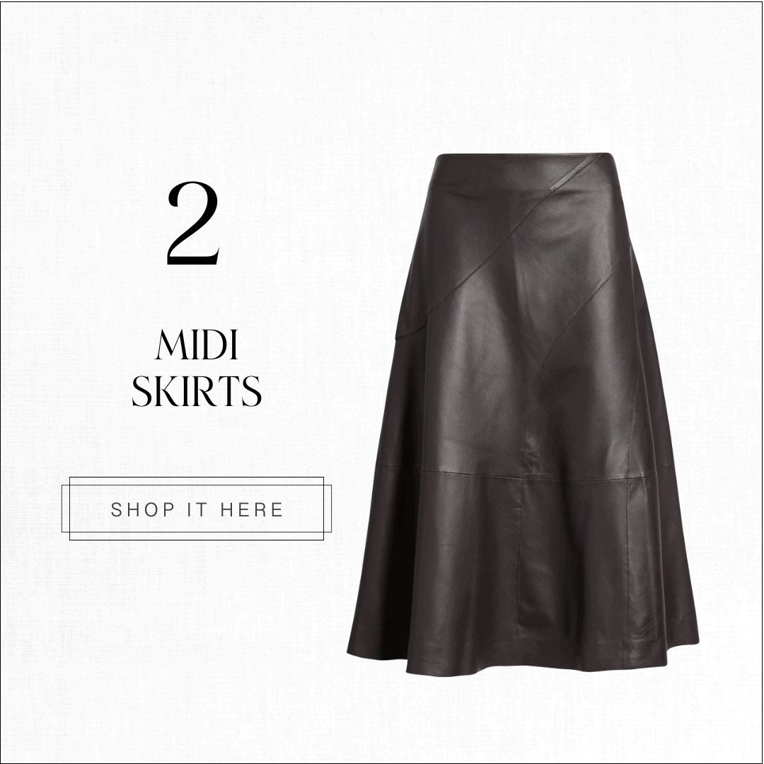 Midi skirts: Zara has some great options, look at gorgeous brown velvet one and this paisley one