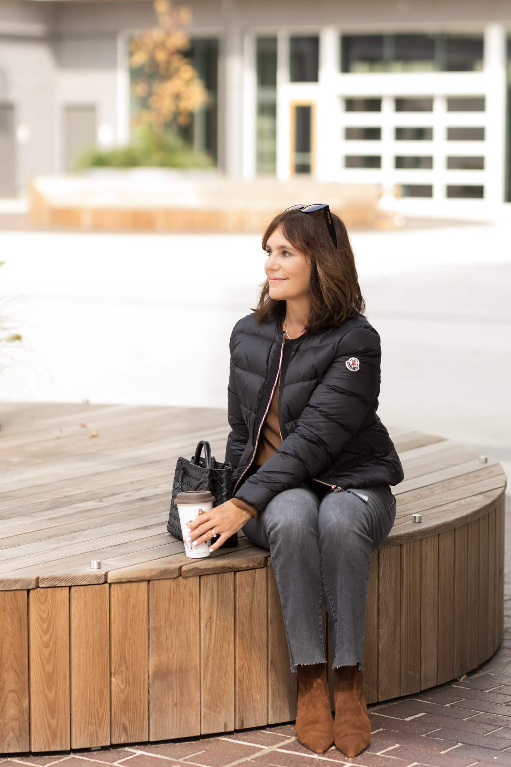 Moncler jacket | Mother jeans, similar | SW boots