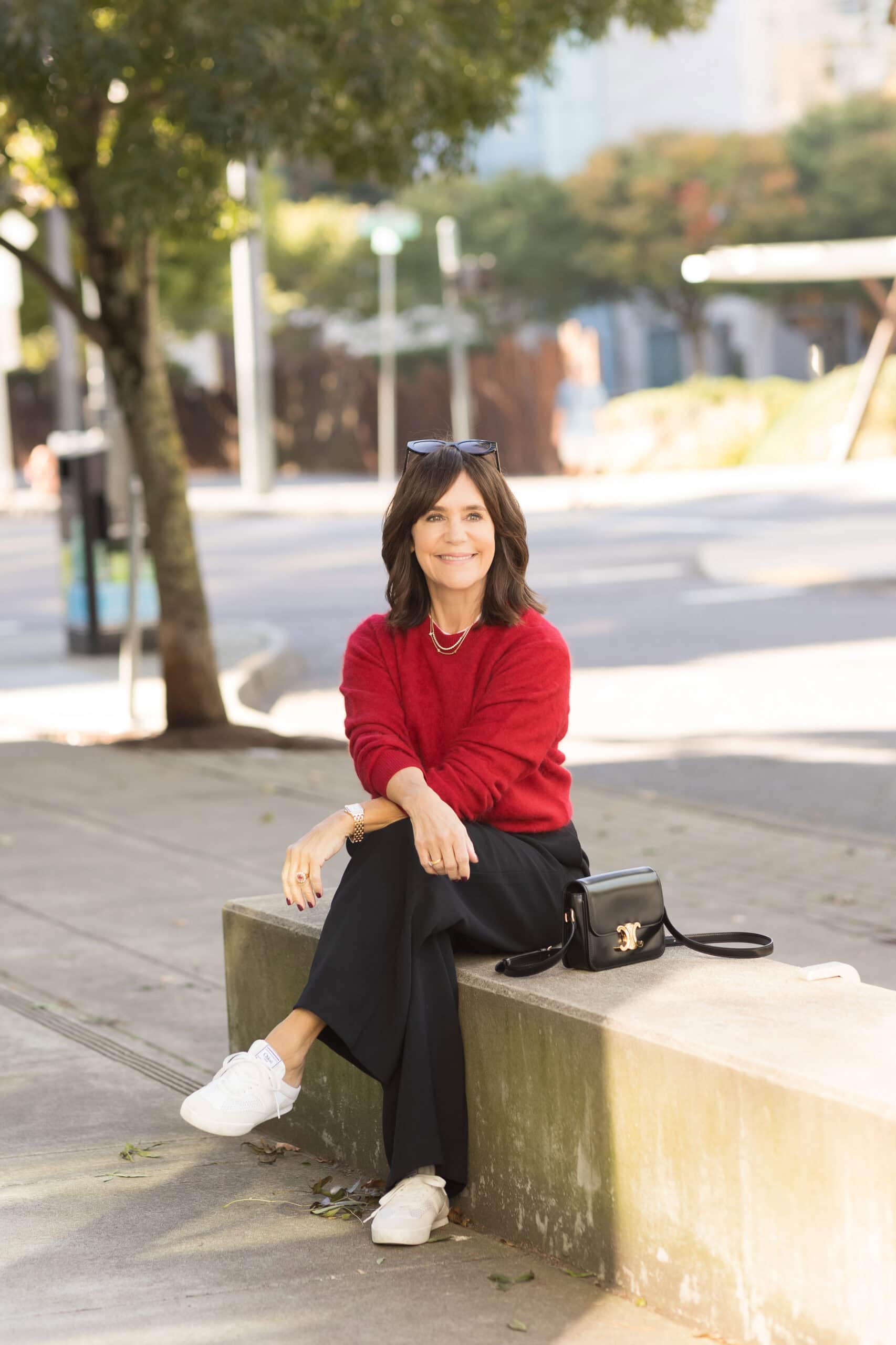 Zara scarf sweater – I love this sweater jacket so much! It’s comfortable and elegant, and looks good with jeans or even a skirt. Both my daughter and I own it and we wear it all the time. Cashmere hoodie – Everyone needs a good cashmere hoodie! You can layer it under pretty much everything, from a trench coat to gently oversized blazer to a wool coat and even a puffer. I’ve worn this ivory one on repeat for the last few months. Frame Gillian blouse – This is hands down one of my favorite blouses, and many of my friends have it too. It has been around for a while, and I’ve had my black one for years. But, when I spotted this pretty leopard one, I knew it was going to be good! Don’t forget I have a discount code to get 15% off (SUSIE!5). Lululemon Hold Tight Tee – While this isn’t exactly stylish, it really is a staple in my closet year round. I’ve talked about it for several years, but included it again because it’s one of my highest recommendations!