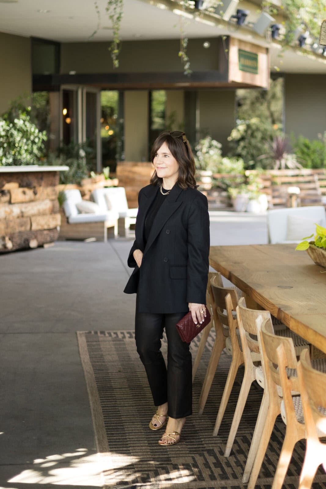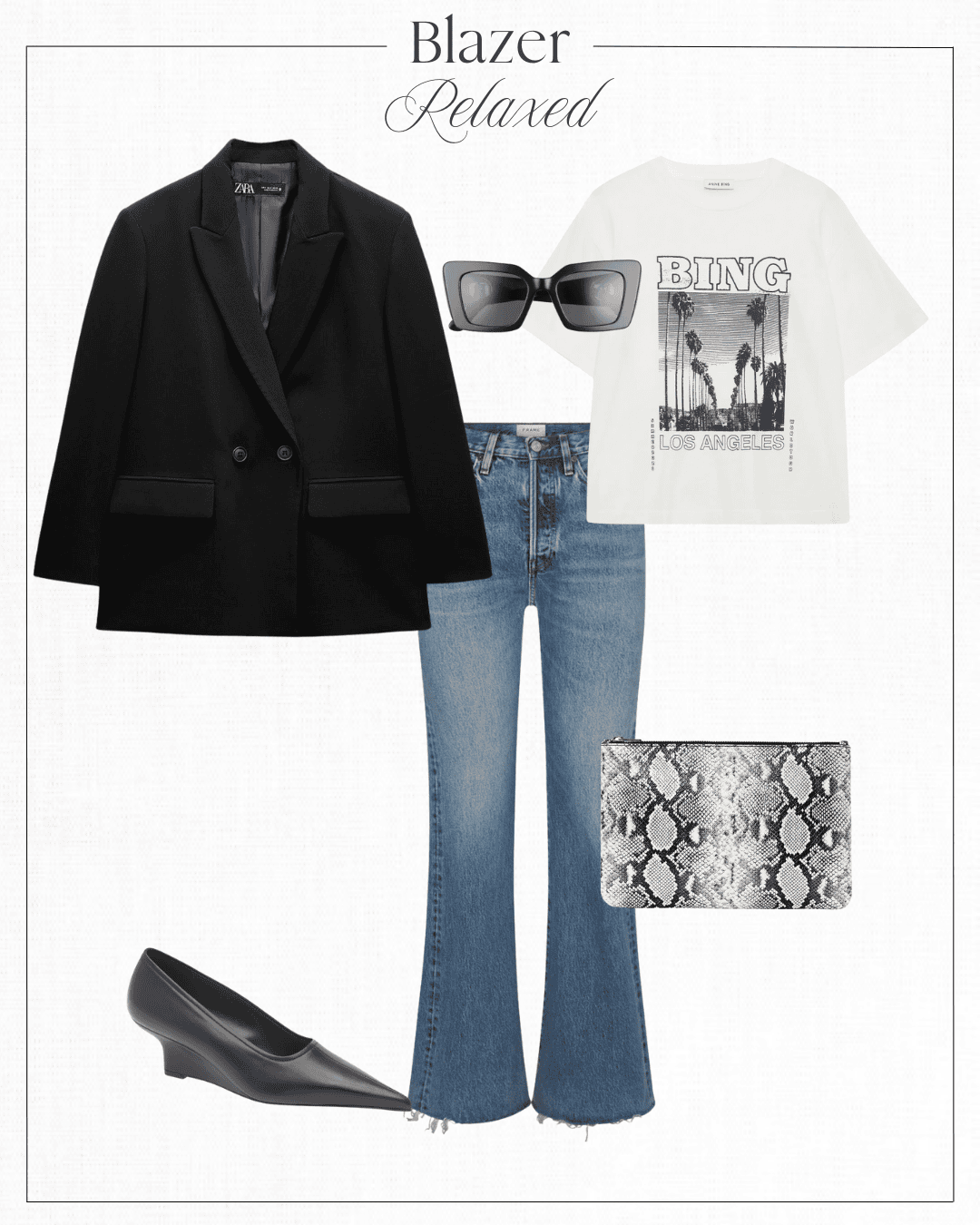 I love a slightly oversized blazer, and this Zara one is really good, and there are so many ways to style it. I think the key is to make sure your black blazer isn’t too fitted, so you get a little cooler look. Another option is this one at Aritzia, I own it myself, and the crepe fabric is perfect any time of year.