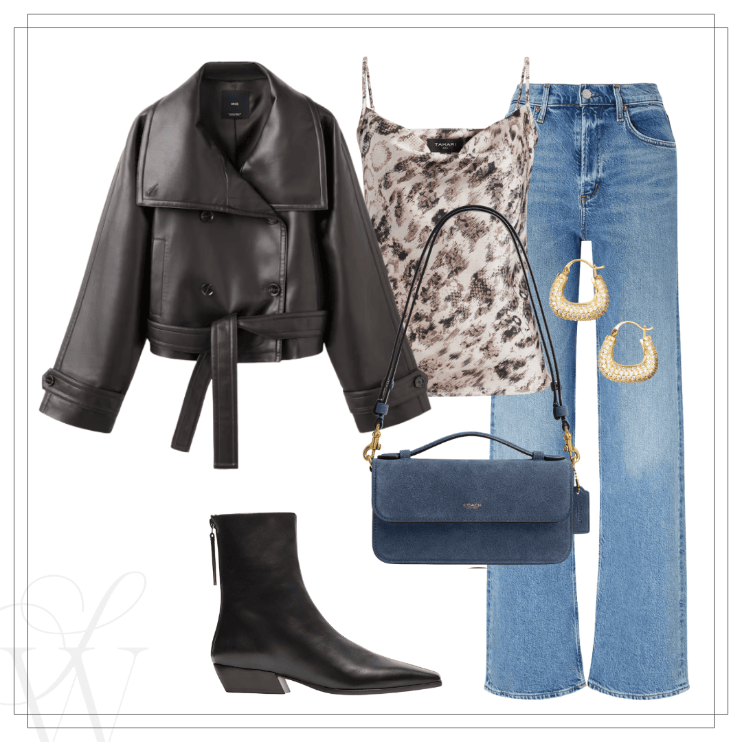1 – Open Edit sweater – In case you didn’t know, the Open Edit brand is part of the Nordstrom label collection, and is known for trendy, versatile and affordable pieces. This structured cardigan has an interesting gold button, and the fabric is really nice. 2 – Open Edit lace cami – Right now, lace camis with an asymmetrical hem are having a moment. They look stylish when layered under a sweater like this, and the little peek of lace sticking out looks pretty. This one is well-priced and a great way to try the trend. Just yesterday, I picked up this one at Zara that I tried under this sweater. It felt new and different, and I’m excited to wear it out! I also have the Open Edit one in my cart. 3 – Mango leather jacket – Stand collar jackets are another trending fashion piece, and this belted one is so good! It’s well-priced, and the rich brown color makes it look way more expensive than it is. Style it with faded blue jeans, or a slim skirt and slingback kitten heels — so chic. I noticed it’s almost sold out at Nordstrom, but you can get it at Mango here and in black here.