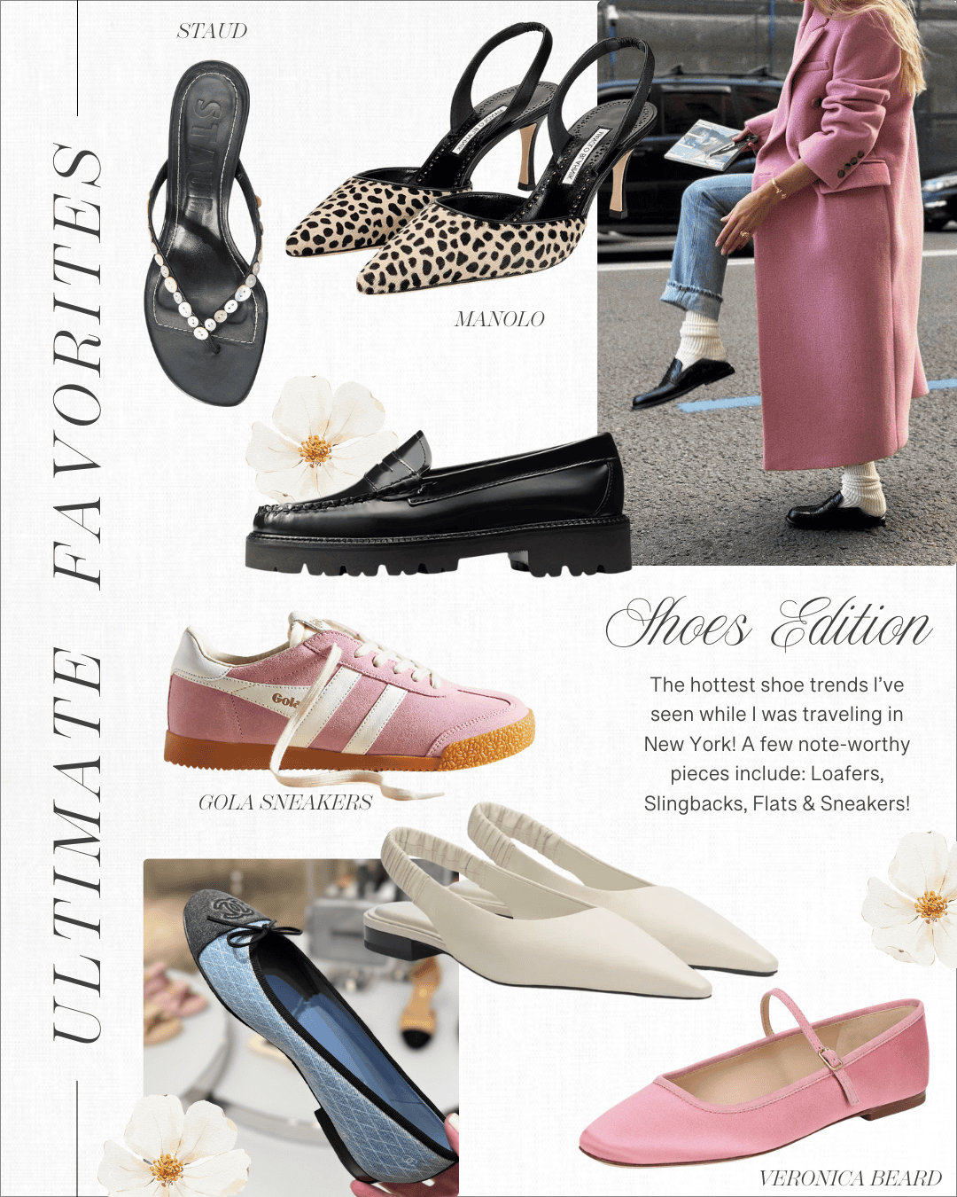 Staud button sandals | Manolo slingbacks | Loafers | Pink Gola sneakers | White slingbacks | Pink satin flats