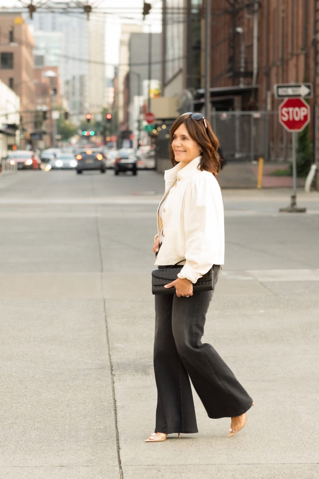 NYC: Sanctuary jacket | Mother jeans – petite sizes here | Sandals | Amazon clutch