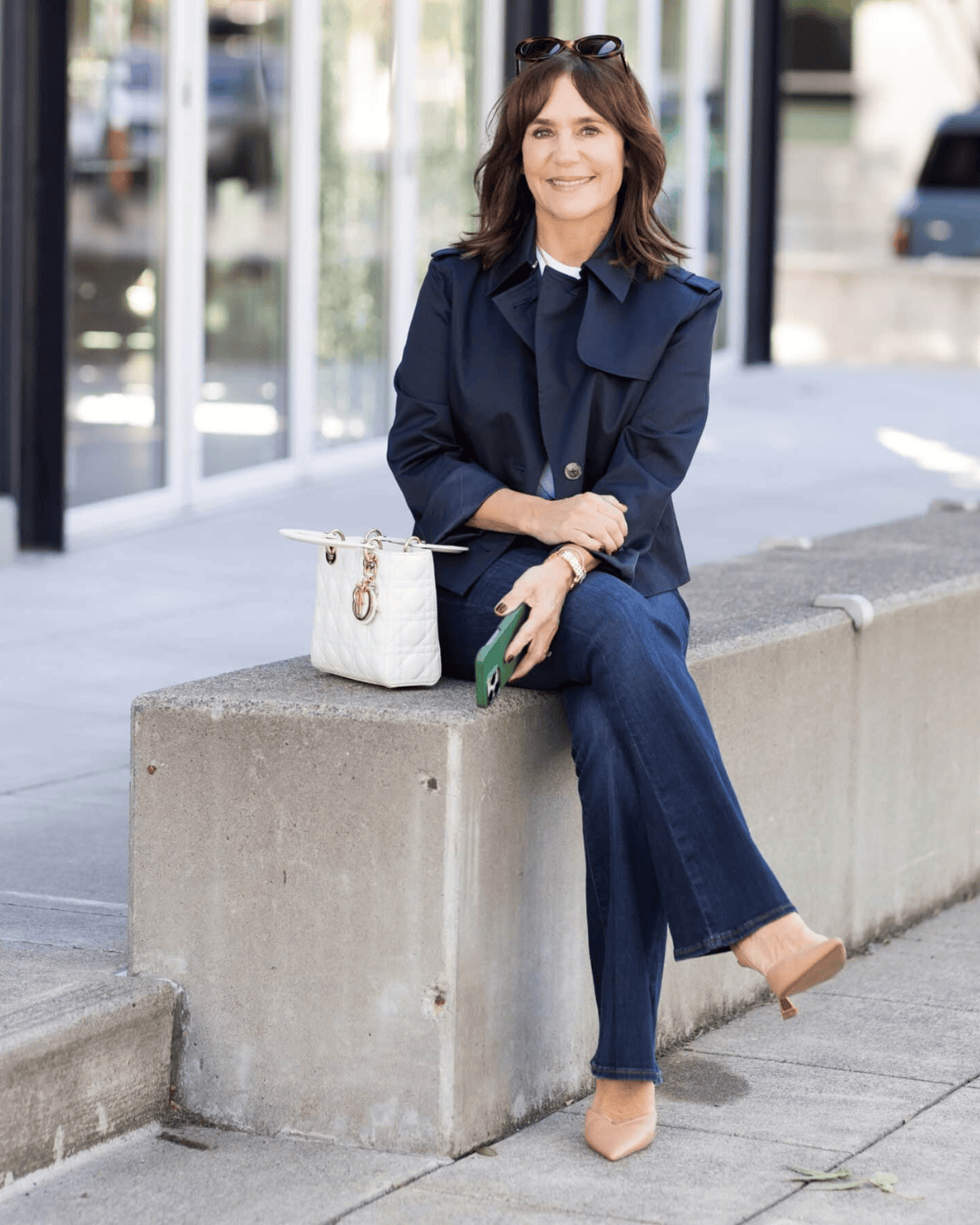 Left: Frame crop trench (it’s back) | Dark wash jeans, similar | Slingbacks, similar | Phone case
