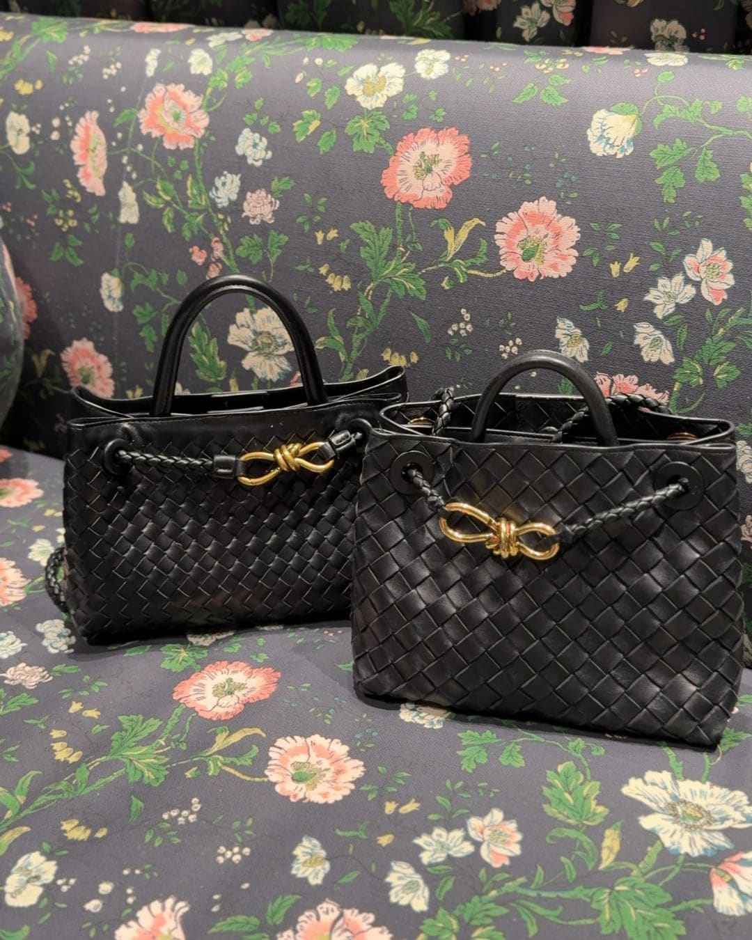 Left: Katie Kime pjs | Right: Bottega bag | Amazon lookalike bag